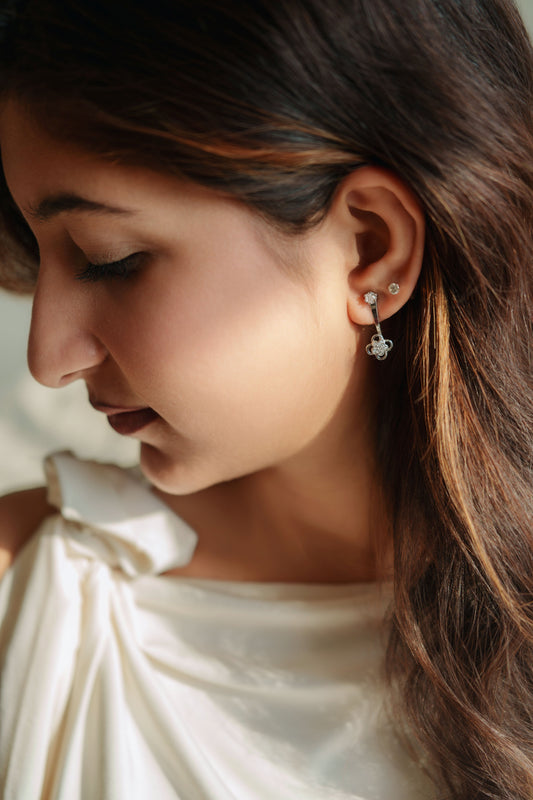 925 Pure Silver Fine Halo Flower Hanging Earrings cum Studs